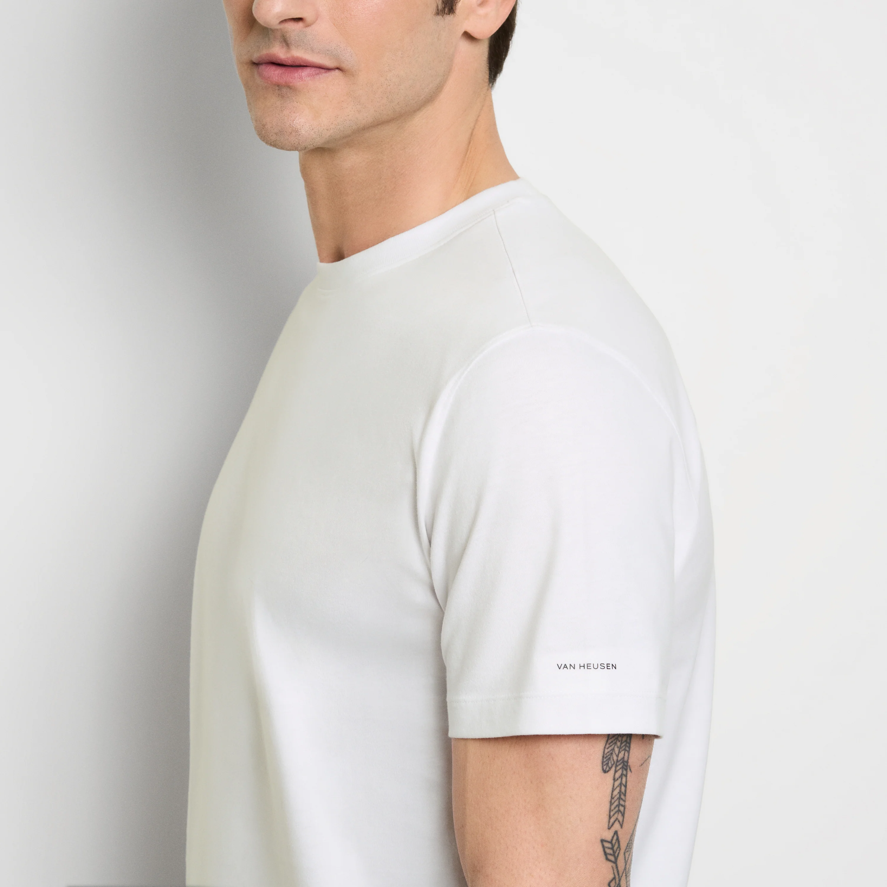 Level up your wardrobe basics with the Essential Crewneck Tee. This go-to style delivers effortless comfort and polished simplicity, whether worn solo or layered. Crafted from ultra-soft fabric, each tee is thoughtfully designed with comfort-enhancing features like a ribbed neck trim, self-fabric neck tape, and a half-moon sweat patch for a clean finish. A modern logo heat transfer at the back neck adds subtle branding. With its sleek fit and premium feel, this 2-pack is built to keep up with your lifestyle—all while keeping you comfortable and put-together.