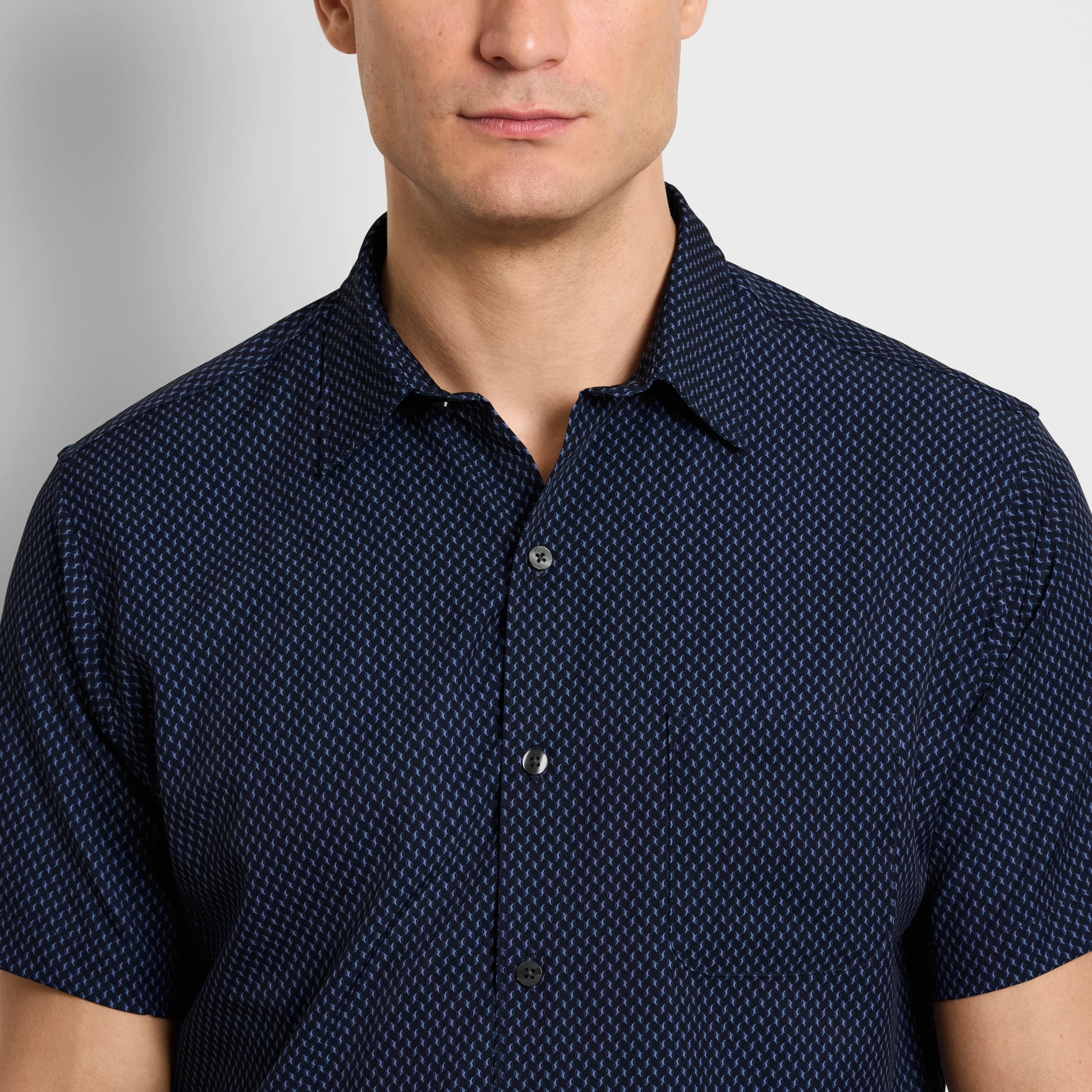 Bring a modern edge to your everyday lineup with a shirt designed to perform as well as it looks. The Hydro Wik Short Sleeve Camp Shirt in Gate blends elevated style with innovative comfort—making it your go-to for everything from workdays to weekends away. Engineered with moisture-wicking technology, this shirt helps keep you cool, dry, and confident from morning meetings to after-hours plans. The refined Gate print delivers a subtle, contemporary look that pairs effortlessly with anything in your closet, while built-in stretch ensures easy movement and all-day comfort. A soft-touch finish enhances the feel, creating a smooth, lightweight layer you’ll want to wear on repeat. Designed with convenience in mind, it features easy-care fabric that’s fully machine washable—so staying polished has never been simpler. With its relaxed camp collar silhouette and performance-driven details, this shirt strikes the perfect balance between laid-back style and everyday functionality.