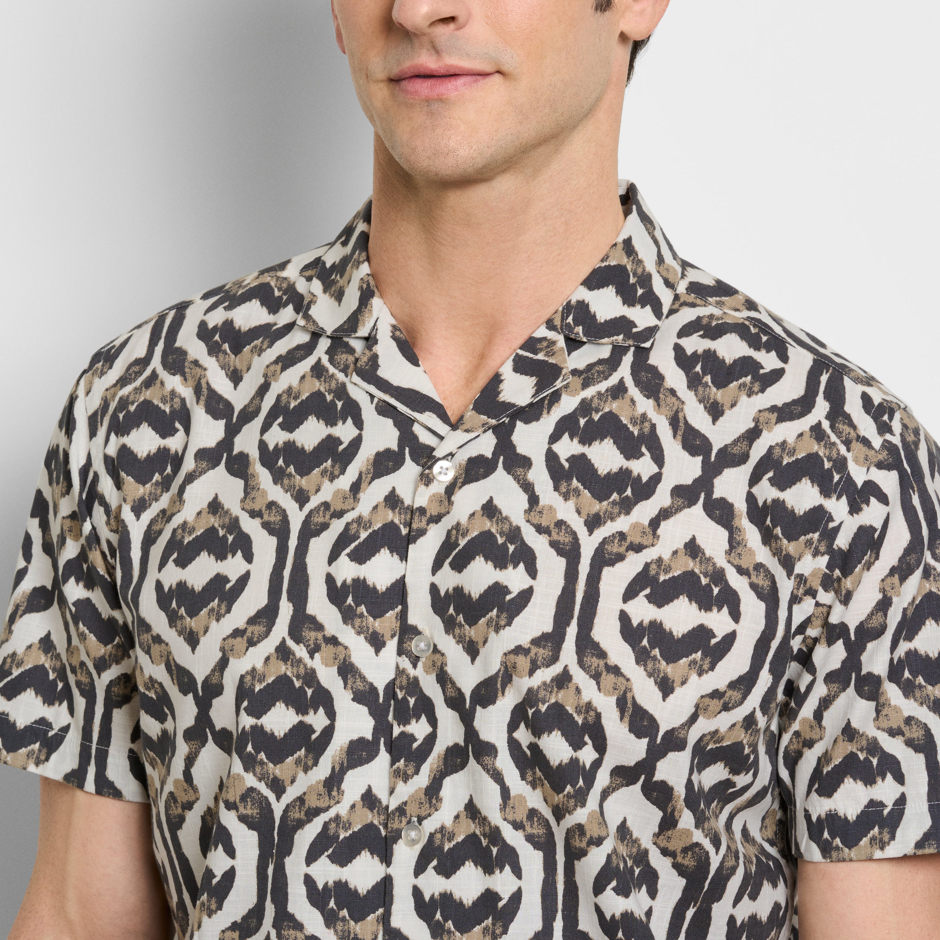 Ikat Print Texture Camp Shirt - Iron Gate