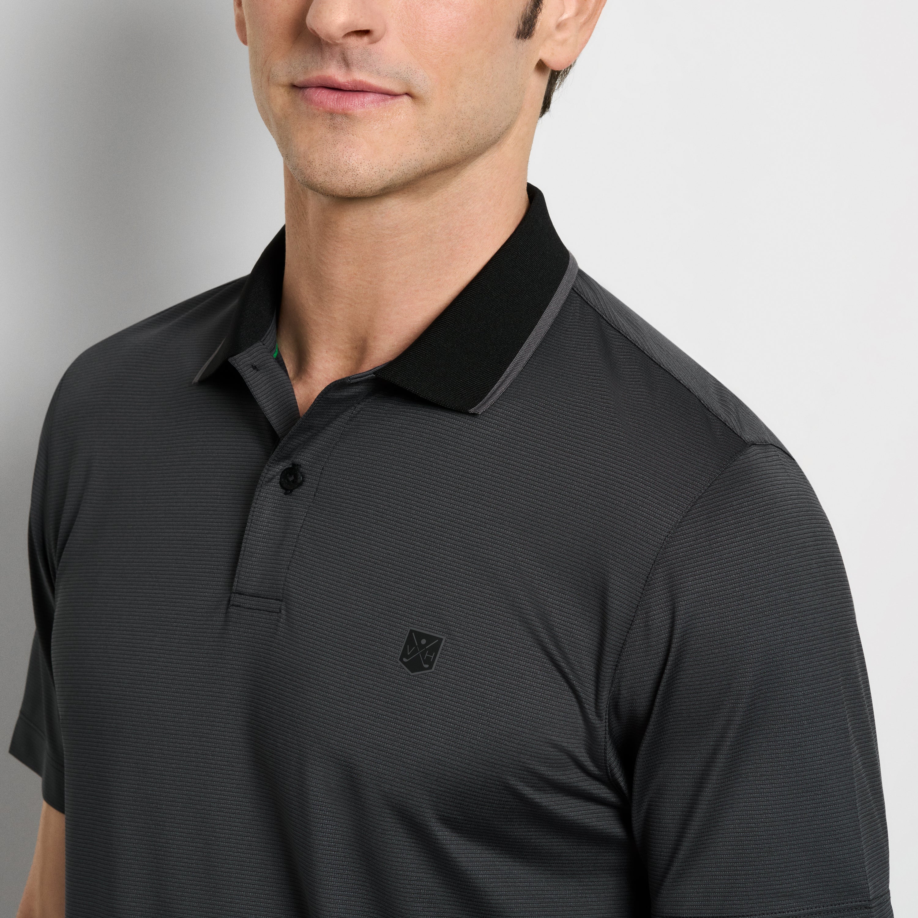 Play through every round in confidence and comfort with the Performance Golf Fine Stripe Polo. Designed with a refined melange stripe and modern performance features, this polo is built to move with you on and off the course. The moisture-wicking stretch fabric keeps you cool and dry, while side vents and a self-fabric back neck tape enhance mobility and ease. A flat knit tipped rib collar and contrast back neck piping add a touch of athletic polish, and the tonal chest logo delivers a subtle, sporty finish. Your game-day go-to just got an upgrade.